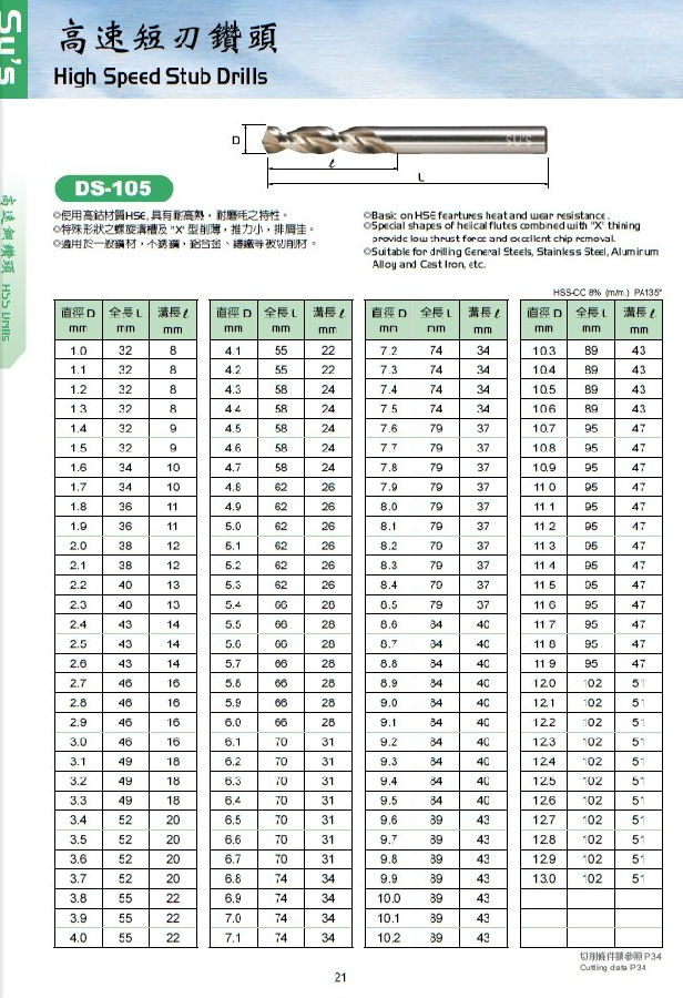 特殊形状之螺旋沟槽及X型削薄.推力小.排屑佳.