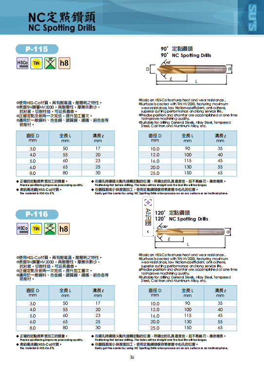 苏氏SUS诺氏钻头顶角118°,材质HSS,表面氧化,精度H8.诺氏钻头,对于一般被切削的工作性质均可适用,在钻孔加工作业上既简单又经济.为了保护夹头,柄部加装塑胶环套,因此在使用时,就不用担心有夹持不良之现象,进而提升效率与寿命,促使加工孔径更精确.柄部的V槽沟是用来配合夹头的爪子,使钻头在作业时不会滑动.